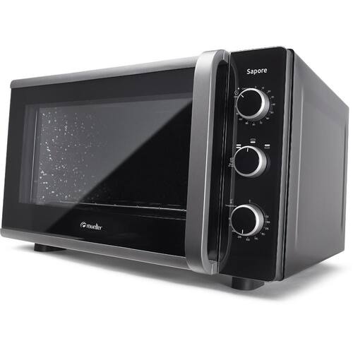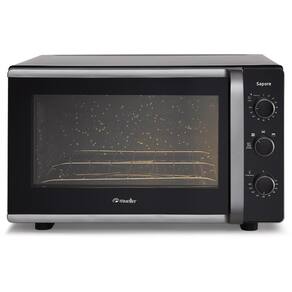 Forno elétrico Mueller Sapore 44 litros com timer, controle automático de temperatura, bandeja de resíduos esmaltada, porta com vidro duplo, grill e isolamento térmico com dupla vedação da porta.Bandeja para resíduos
