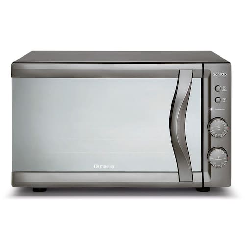 Características Marca: Mueller Modelo: Sonetto Vidro Espelhado Tipo: Elétrico Possui luz interna: Sim Possui timer: Sim, de até 120 minutos Capacidade do Forno: 44 litros Acabamento do Forno: Limpa fácil, total clean Puxador ergonômico Isolamento térmico total: Retém o calor e economiza energia. Possui vidro duplo na porta.