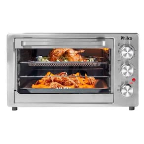 Forno elétrico pfe40i air fry philco 2 em 1 40l 110v o forno elétrico philco pfe40i air fry facilita o seu dia a dia na cozinha. Ele torna prático o preparo de todas as suas receitas isso porque ele é 2 em 1: pode ser utilizado tanto como forno elétrico quanto air fry. Na função air fry, você pode preparar receitas livres de óleo e sem gordura. Com capacidade para 40 litros, ele possui 4 resistências, na parte inferior e superior, proporcionando a você temperaturas de 100 a 230ºc. Seu revestimento interno é esmaltado, resultando em uma limpeza prática e rápida. O forno elétrico philco pfe40i tem capacidade de 40 litros, sendo compacto por fora e espaçoso por dentro. Características: - forno com função air fry - interior esmaltado - seletor de temperatura de 100 a 230c - timer de 60 min - seleção de resistências - luz indicadora de funcionamento - luz interna