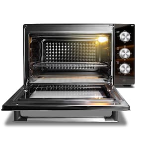 Não se trata de um produto em INOX. Porta e painel espelhados Temperatura máxima 250 graus Revestimento interno autolimpante Timer de até 120 minutos Porta com vidro duplo Coletor de migalhas pintado Seletor de resistências com 4 modos: inferior, superior, inferior + superior e desligado Grelha com ajuste de altura