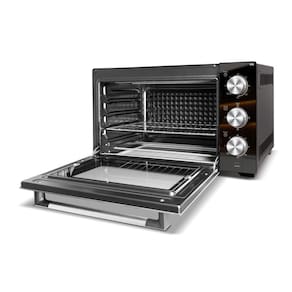 O Forno Elétrico Philco Full Glass 50l PFE50PE possui design elegante, laterais em preto e frente com acabamento espelhado, tornando sua cozinha funcional e moderna! Com Função dourar, que deixa os alimentos mais dourados e crocantes ele tem capacidade para 50 litros, aquece, assa, tosta, doura, gratina e grelha. Oferece duas resistências, superior e inferior, com controle individual de temperatura para distribuir melhor o calor. Além do timer de 120 minutos com desligamento automático, praticidade para programar o preparo de diversas receitas. E para sua maior comodidade, conta com grelha deslizante com regulagem de altura, facilitando o manuseio e o acesso ao alimento!