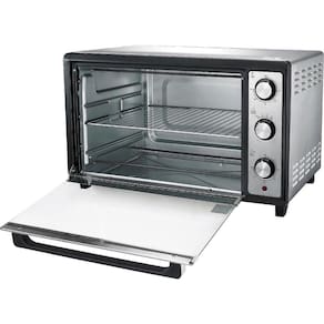 Modelo: BFE50P Cor Externa Predominante: Preta Capacidade: 50 litros Composição: Metal, Vidro e Plástico. Abertura da porta: Frontal Funções: Timer de 120 min, Manter Ligado e Dourar Prateleira: 1 Grelha interna removível Resistências: 2 (inferior e superior) Potência: 1500W Tipo de Alimentação: Elétrica Voltagem: 127V