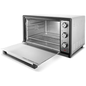 - Capacidade: 65L - Potência 1500W - Botão seletor de temperatura de 90ºC a 230ºC - Botão seletor de funções: aquecimento superior, inferior, superior e inferior - Botão Timer de 120 minutos com sinal sonoro - Luz indicadora de funcionamento - Acompanha grelha inox deslizante.