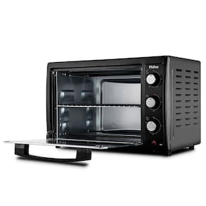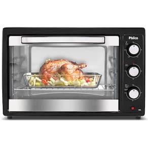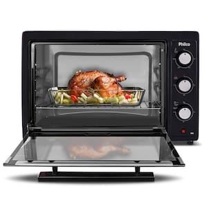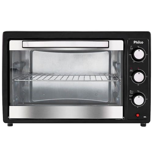 - Aquece, assa, tosta, doura, gratina e grelha - Capacidade de 38L - capacidade para receitas para toda família - Seletor de modo de resistência, modo superior (função dourar), modo inferior, ambas ligadas - Seletor de temperatura com marcação de 90°C a 250°C - Timer de 60 minutos - prepare suas receitas em até 1 hora - Função dourar: deixa os alimentos mais dourados e crocantes - Função manter ligado - Desligamento automático - Acompanha grelha - permite 3 níveis de ajuste de altura - Luz indicadora de funcionamento - Porta de vidro temperado - Material / composição: Metal, plástico e vidro - Tamanho do fio: 85cm - Tomada (A): 127V: 20A /220V: 10A - Medidas internas do forno (A x L x P): 28,8 x 37,5 x 33,4cmForno autolimpante