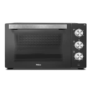 Forno elétrico Philco Full Glass com capacidade de 50 litros, função dourar, resistências superior e inferior com controle individual de temperatura, timer de 120 minutos com desligamento automático e grelha deslizante com regulagem de altura.Forno autolimpante