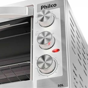 O forno elétrico Philco possui capacidade de 50L: ideal para qualquer ambiente,seletor de temperatura de 100°C a 230°C: A temperatura ideal para a sua receita. Seletor de resistências: flexibilidade para você escolher a inferior, superior ou ambas, facilitando que os alimentos não queimem ou fiquem crus Timer de 60 minutos: maior comodidade no preparo dos alimentos, pois possui desligamento automático e um aviso sonoro Grelha em Inox: Com 3 níveis de ajuste Porta de vidro temperado: Maior segurança Bandeja coletora: Garante maior praticidade na coleta de resíduos