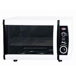 Forno elétrico com controle preciso de temperatura de 50°C a 300°C, resistências blindadas (Superior 750W e Inferior 1000W), acabamento externo branco, porta removível de vidro temperado com perfil de alumínio, prateleira com 3 níveis de ajuste.Timer