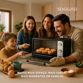 ConclusãoO Forno Elétrico Suggar 60L é a solução ideal para quem deseja praticidade e eficiência na cozinha. Com um design elegante e funcionalidades avançadas, ele transforma a experiência de cozinhar em um momento prazeroso. Não perca a oportunidade de levar para casa este produto que combina qualidade e inovação.