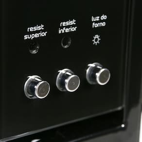 Características Gerais do produto Forno elétrico cometros controle independente de resistências superior e inferior, termetrosostato autometrosático, timetroser programetrosável e lâmetrospada interna.