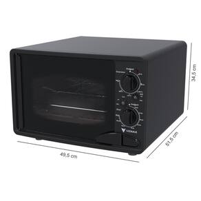 Tipo: Forno de bancada Marca: Venax Luz no forno: Sim Prateleira do forno: 1 regulável Revestimento forno: Limpa fácil Controle de temperatura: Sim Temperatura: 50C até 300C Função grill: Sim Timer grill: até 120 min Espeto giratório: Não Bandeja coletora de resíduos: Sim Porta do forno: Vidro Panorâmico Preto Vidro duplo na porta: Não Porta com travamento mecânico: Sim Porta removível: Não Puxador da porta: Não Medidas do produto: Altura 34,5cm - Largura 49,5cm - Profundidade 51,5cm