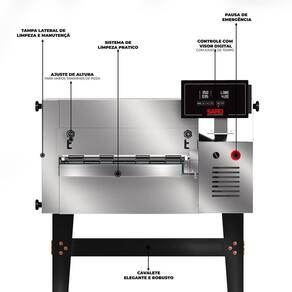 - Sua esteira de 50 cm garante um fluxo contínuo de produtos, economizando tempo e padronizando o ponto ideal de cada fornada.