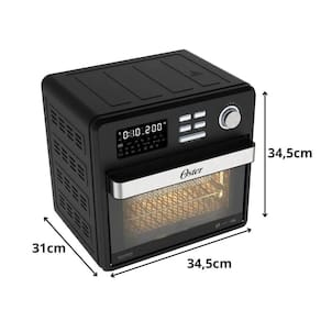 Ficha técnica voltagem 220v Capacidade (L): 15 Tipo: Bancada Grill: Sim Timer: Sim Função pré programada: Sim Prateleira: 4, removiveis Temperatura máxima (°C): 200 Abertura da porta: Frontal Porta removível: Não Painel digital: Sim Luz interna: Sim Bandeja para resíduo: Removível Relógio: Não Alimentação: Elétrico Cor: Preto Potência elétrica (W): 1600 Consumo (kWh): 1,6 Peso (kg): 6.1 Referência: OFOR160 Dimensões (AxLxP): 34,5x34,5x31cm Registro INMETRO: OCP0040 Itens Inclusos: 1 Forno Fryer Elétrico Oster OFOR160 15L Multifunções Compact 10 em 1 Manual do produto Informações importantes: Imagens meramente ilustrativas.Objetos que ambientam as fotos não acompanham o produto.As tonalidades das cores dos produtos podem sofrer alterações de acordo com a calibração do seu monitor.Este produto não inclui montagem e instalação.Não nos responsabilizamos,no ato da entrega,por desmontagens,subir escadas,elevadores ou transporte por guincho para apartamentos.Eventuais despesas são de responsabilidade do cliente. Garantia Fabricante: 12 meses