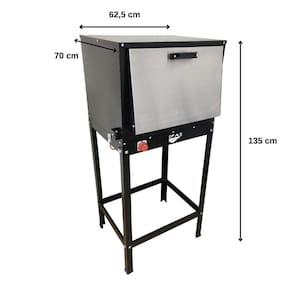 Forno Profissional Grande com Cavalete Baixa Pressão Tampa Inox Marca Cefaz O Forno Profissional Cefaz 100 Litros conta com sistema de gás GLP Baixa Pressão e queimador em serpentina tubular 7/8”, as laterais do forno externo em aço carbono com pintura epóxi na cor preta, sua Tampa Inox com puxadores em baquelite, e seu acabamento interno em chapa minimizada. Para melhor aquecimento seu isolamento é produzido com lã de rocha aplicado nas laterais, e tampa chegando até 250°, assim aumentamos mais sua caloria interna e reduzimos a caloria externa! Contém sistema de botão regulador de gás para o controle da chama. Acompanha 1 Grelha contendo 3 níveis de altura. Ideal para Bolos, massas, pães, carnes, peixes e outros vários tipos de alimentos. Informações Técnicas - Modelo: FRG-15 - Alimentação: Gás GLP Baixa Pressão - Temperatura máxima de até 250 graus - Cor: Preto - Capacidade 100 litros - Forno com Tampa Inox - Acabamento interno em chapa minimizada - Acabamento externo em aço carbono pintado - Isolamento em Lã de Rocha - Cavalete em aço carbono pintado - Acompanha 1 grelha - Consumo de gás 0,395kg/h Medida Interna do Forno Altura: 31cm Largura: 51,5cm Comprimento: 63cm Medida externa do forno montado com Cavalete Altura: 135cm Largura: 63cm COmprimento: 70cm Peso: 30,7kgGarantia3 meses contra defeito de fabricação