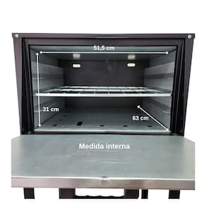 Além disso, você conta com um sistema de botão regulador de gás para o controle da chama e uma grelha com 3 níveis de altura.