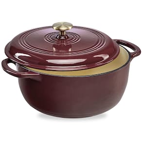 Especificações: Dimensões gerais: 35,5 cm (C) x 28,6 cm (L) x 19 cm (A) Capacidade do forno: 6 Qt Peso do produto: 6,4 kg. Material: ferro fundido Sem necessidade de montagem. Apenas para uso residencial SKU BCP: SKY7157 - Design resistente: o ferro fundido espesso é definido com um acabamento exterior brilhante e um interior esmaltado para combinar qualidade duradoura com fácil manutenção. - Pronto para forno e fogão: resistente e versátil, este forno holandês é adequado para qualquer sistema de cozimento! Use as alças laterais para levar sua refeição de fogões a gás e eletricidade para o forno e grelha; é perfeito para assar, fritar ou assar seus pratos favoritos - Tamanho familiar: Alimente grandes grupos em potlucks, festas e outras reuniões, pois este forno holandês de tamanho familiar comporta até 6 litros de caçarola, sopa, ensopado, assados e suas outras refeições exclusivas! - ALTA RETENÇÃO DE CALOR: Construído para alcançar e manter temperaturas de até 250 °C, um conjunto de saliências de condensação na tampa pesada ajuda a vedar umidade, calor e sabor - Eleve sua cozinha: um acabamento limpo e brilhante torna este forno holandês um ícone nostálgico e uma adição moderna a qualquer cozinha bem equipada; possui uma alça de metal escovado (prata ou ouro) para um toque extra de estilo! ; Dimensões gerais: 35,5 cm (C) x 28,6 cm (L) x 19 cm (A); Capacidade do forno: 6 Qt.