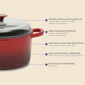 - Sem necessidade de tempero: o esmalte em uma cor vibrante torna esta panela multiuso uma peça impressionante de declaração do forno à mesa. Sem necessidade de tempero, é fácil de limpar e manter sem o desconforto da ferrugem e corrosão.