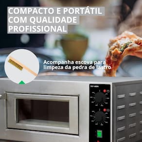 O forno de lastro Analógico Para Pizza pode ser empilhado em até 3 unidades, traz tecnologia sem perder a marca da tradição, isso porque ele conta com um lastro de pedra de cordierita, super eficiente para reter o calor. Com sua capacidade de alta temperatura, esse forno ainda tem um ótimo isolamento térmico sendo uma opção perfeita para pequenos negócios que buscam maximizar sua produção. Um equipamento robusto e de alta qualidade, proporcionando melhor desempenho e produtividade. Possui lastro de silicato refratário e sua capacidade é para 25 litros, tendo em seu interior 42 cm de largura e 40 cm de profundidade, as dimensões ideais para a produção de uma pizza de até 40 cm. O forno de pizza também acompanha escova para facilitar a limpeza do lastro.