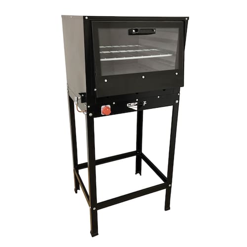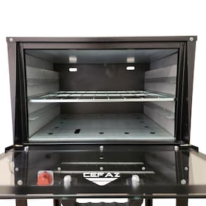 Forno Profissional Médio com Cavalete Baixa Pressão Tampa de Vidro Marca Cefaz O Forno Profissional Cefaz 80 Litros conta com sistema de gás GLP Baixa Pressão e queimador em serpentina tubular 7/8”, as laterais do forno externo em aço carbono com pintura epóxi na cor preta, sua Tampa de Vidro temperado com puxadores em baquelite, e seu acabamento interno em chapa minimizada Para melhor aquecimento seu isolamento é produzido com lã de rocha aplicado nas laterais, e tampa chegando até 250°, assim aumentamos mais sua caloria interna e reduzimos a caloria externa! Contém sistema de botão regulador de gás para o controle da chama. Acompanha 1 Grelha contendo 3 níveis de altura. Ideal para Bolos, massas, pães, carnes, peixes e outros vários tipos de alimentos.Informações Técnicas - Modelo: FRG-08- Alimentação: Gás GLP Baixa Pressão- Temperatura máxima de até 250 graus- Cor: Preto- Capacidade 80 litros - Forno com visor de vidro temperado- Acabamento interno em chapa minimizada- Acabamento externo em aço carbono pintado- Isolamento em Lã de Rocha- Cavalete em aço carbono pintado- Acompanha 1 grelha- Consumo de gás 0,380kg/hMedida Interna do FornoAltura: 31cmLargura: 51,5cmComprimento: 50cm Medida externa do forno montado com cavalete Altura: 135cmLargura: 63cmComprimento: 57cmPeso: 26,3kg Garantia 3 meses contra defeito de fabricação