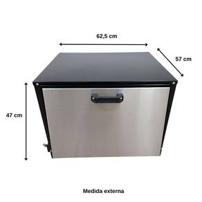 Forno para Fogão Profissional Médio Baixa Pressão Tampa Inox Cefaz O Forno Profissional Cefaz 80 Litros indicado para fogões de 4,6,8,10 e até12 Bocas, conta com sistema de gás GLP Baixa Pressão e queimador em serpentina tubular 7/8”, as laterais do forno externo em aço carbono com pintura epóxi na cor preta, sua Tampa em Inox 430 com puxadores em baquelite, e seu acabamento interno em chapa minimizada   Para melhor aquecimento seu isolamento é produzido com lã de rocha aplicado nas laterais e também na tampa do forno, chegando até 250°, assim aumentamos mais sua caloria interna e reduzimos a caloria externa! Acompanha 1 Grelha. Ideal para Bolos, massas, pães, carnes, peixes e outros vários tipos de alimentos. Esse forno é indicado somente para Fogões Industriais, pois usa o controle de chama do próprio fogão.Informações Técnicas   - Modelo: FRG-11- Alimentação: Gás GLP Baixa Pressão- Temperatura máxima de até 250 graus- Cor: Preto- Capacidade 80 litros- Forno com Tampa Inox - Acabamento interno em chapa minimizada- Acabamento externo em aço carbono pintado- Isolamento em Lã de Rocha- Acompanha 1 grelha- Consumo de gás 0,380kg/hMedida Interna do Forno Altura: 31cmLargura: 51,5cmComprimento: 50cmGarantia 3 meses contra defeito de fabricação