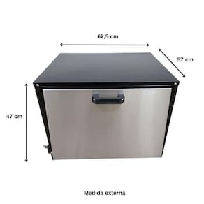 Forno para Fogão Profissional Médio Baixa Pressão Tampa Inox Cefaz O Forno Profissional Cefaz 80 Litros indicado para fogões de 4,6,8,10 e até12 Bocas, conta com sistema de gás GLP Baixa Pressão e queimador em serpentina tubular 7/8”, as laterais do forno externo em aço carbono com pintura epóxi na cor preta, sua Tampa em Inox 430 com puxadores em baquelite, e seu acabamento interno em chapa minimizada Para melhor aquecimento seu isolamento é produzido com lã de rocha aplicado nas laterais e também na tampa do forno, chegando até 250°, assim aumentamos mais sua caloria interna e reduzimos a caloria externa! Acompanha 1 Grelha. Ideal para Bolos, massas, pães, carnes, peixes e outros vários tipos de alimentos. Esse forno é indicado somente para Fogões Industriais, pois usa o controle de chama do próprio fogão.Informações Técnicas - Modelo: FRG-11- Alimentação: Gás GLP Baixa Pressão- Temperatura máxima de até 250 graus- Cor: Preto- Capacidade 80 litros- Forno com Tampa Inox - Acabamento interno em chapa minimizada- Acabamento externo em aço carbono pintado- Isolamento em Lã de Rocha- Acompanha 1 grelha- Consumo de gás 0,380kg/hMedida Interna do Forno Altura: 31cmLargura: 51,5cmComprimento: 50cmGarantia 3 meses contra defeito de fabricação