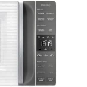 Funções: Descongelamento assistido; tira odor; limpa fácil; trava-painel; manter aquecido; desidratar; cozinhar delicado