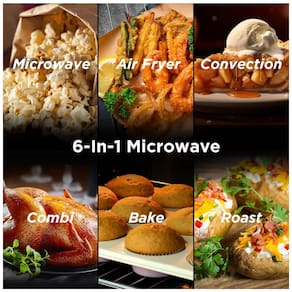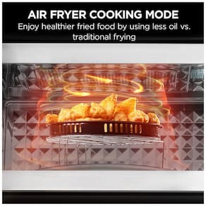 Forno micro-ondas de embutir com fritadeira a ar, convecção, grelhador combinado, assar e grelhar. Modo Fritadeira a Ar prepara alimentos mais saudáveis e crocantes com menos óleo. Modo de Reaquecimento por Sensor mantém o sabor fresco dos alimentos. Potente ventilador de 300 CFM com luz integrada. Controle Touch. Trava de Segurança para Crianças.Função Grill
