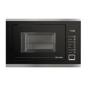 Micro-ondas de embutir Mueller com capacidade de 25 litros, grill dourador, display digital com LED branco, painel touch control, função descongelamento e 8 receitas pré-programadas.Função Grill