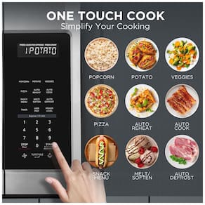 Agora você pode ter mais praticidade e estilo na sua cozinha com o Forno Micro-ondas Over The Range BLACK+DECKER EM044KB19. Com capacidade de 53,80 litros e 1000 watts de potência, este micro-ondas conta com 10 níveis de potência, sistema de ventilação de dois velocidades com 400 CFM e prato giratório de 34,29 cm. O recurso de cozimento com um toque ajusta automaticamente a potência e o tempo para diferentes alimentos, como pipoca, batata, vegetais, pizza, petiscos, bacon, jantar congelado, arroz e café da manhã congelado. Além disso, vem com uma prateleira para cozimento/reaquecimento em dois níveis. As opções pré-programadas para diversos alimentos facilitam o preparo das suas refeições diárias. Com iluminação LED no cooktop, oferece uma visão clara e brilhante das suas refeições. O sistema de ventilação de duas velocidades garante um ambiente mais limpo e livre de odores. Com a função de ligar/desligar o prato giratório, você pode preparar pratos maiores com facilidade. Tudo isso em um design elegante de aço inoxidável. Dimensões externas: 39,88 cm x 74,93 cm x 41,66 cm (L x P x A), Dimensões internas: 50,39 cm x 35,05 cm x 23,09 cm (L x P x A), Diâmetro do prato giratório: 34,29 cm.