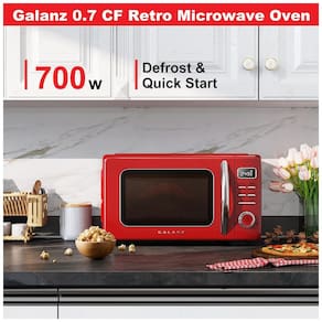 O micro-ondas retrô de bancada Galanz GLCMKZ07RDR07 é um modelo compacto com capacidade aproximada de 20 litros, indicado para uso residencial em cozinhas pequenas, apartamentos, cozinhas de apoio e áreas de convivência. Com potência de 700W e prato giratório de vidro de cerca de 24,4 cm de diâmetro, o aparelho distribui o aquecimento de forma uniforme sobre pratos, tigelas e recipientes compatíveis com micro-ondas.?