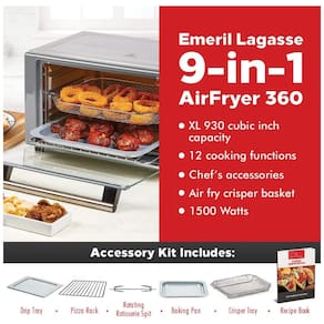 Transforme sua experiência culinária com o Forno Air Fryer Emeril 9-em-1, um eletrodoméstico completo que substitui seu forno convencional de bancada e entrega resultados profissionais com facilidade. Com sua avançada tecnologia e design elegante em aço inoxidável, este forno é o aliado perfeito para preparar pratos deliciosos e saudáveis.