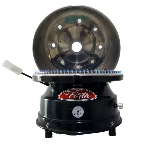 Característica do forno: Cúpula com cordão reforçado. Fabricado em alumínio. alta durabilidade Lastro de 43cm de ferro nodular. Assa pizza de até 40cm pizza grande . Painel com marcador de temperatura analógico. Mangueira 2 metros. Podendo trabalhar em quaisquer superfícies. Não esquenta a base. Regulador manual de chama. Marcador de temperatura digital e acendimento elétrico igual de fogão Muito economico podendo durar mais de 15 dias um tambor de gás de 13kgs. alta demanda