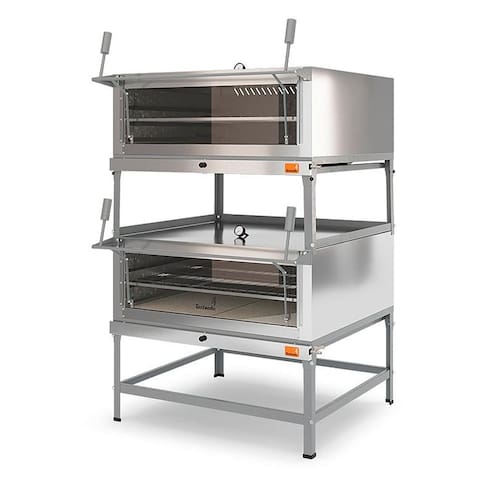 - 6 queimadores para cada forno com sistema de gaveta, em aço tubular de chama dupla;