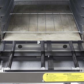 A bandeja coletora de resíduos é feita em chapa galvanizada, por isso, não deixa a sujeira entrar no compartimento, protegendo o alimento. Além do mais, o forno acompanha uma grelha reforçada por câmara garantindo segurança para quem for operá-la.
