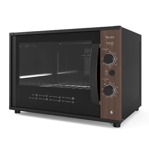 Quando o assunto é praticidade e inovação, nós temos a solução. Lançamento Forno Elétrico Terim TOP 60 Collor Madeirado Canela. O modelo incorpora um design diferenciado, com painel em 6 opções de cores vibrantes: Vermelho Marsala, Laranja Damasco, Azul Anis, Amarelo Curry e nas opções madeirado Canela ou Jatobá! Além do design diferenciado a limpeza ficou muito mais rápida e fácil com o seu interior Easy Clean. Sem contar na economia por não necessitar do uso de produtos abrasivos. O controle ideal de temperatura pode ser ajustado em até 300 graus e o timer em até 120 min. Para melhor acompanhamento do preparo este produto também conta com opção de Grill e Luz interna. Facilitamos o manuseio em colocar ou retirar recipientes no interior do forno com a grade e a bandeja removíveis. Terim, tornando sua vida mais prática!
