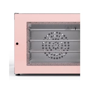 Com um design elegante na cor Rosa Mousse, o Forno Turbo Elétrico 4 Esteiras Convecção Rosa Anodilar também conta com uma porta de vidro temperado, que permite visualizar o cozimento dos alimentos sem precisar abrir o forno.