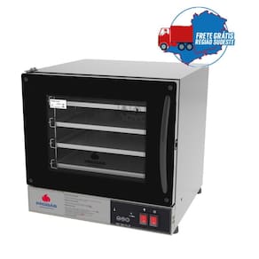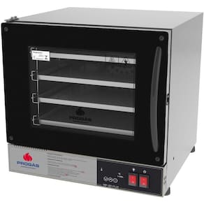 Todas as funcionalidades do Forno Turbo PRP-004 G2 agora na versão digital. O PRP-004 Plus veio para facilitar o controle de temperatura e tempo de suas receitas, proporcionando mais precisão, comodidade e facilidade. Disponíveis nas cores de vidro vermelha e preta. - Controlador de fácil programação com display que contempla: controle de temperatura de 0º a 250ºC, temporizador de 360 minutos e aviso sonoro de tempo de cozimento; - Acompanha 4 esteiras de alumínio perfuradas de 350x350mm - Sensor de temperatura blindado; - Litragem: 39 litros; - Resistência blindada de 200W; - Lâmpada halógena de 35W; - Motor monofásico de 1/30CV; - Isolamento térmico com lã basáltica; - Porta de vidro temperado com espessura de 4mm - Tensão 127 Dimensões (LxAxP): 51,8cm x 51cm x 66,5cm capacidade: 4 esteiras Frequência: 50-60Hz Potencia: 2000W Consumo: 1,5kW/h Peso Líquido: 21,5kg