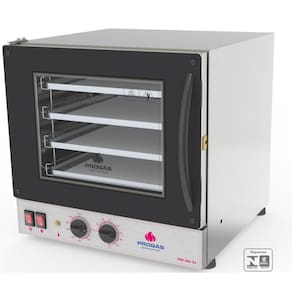 Todas as funcionalidades do Forno Turbo PRP-004 G2 agora na versão digital. O PRP-004 Plus veio para facilitar o controle de temperatura e tempo de suas receitas, proporcionando mais precisão, comodidade e facilidade. Disponíveis nas cores de vidro vermelha e preta. - Controlador de fácil programação com display que contempla: controle de temperatura de 0º a 250ºC, temporizador de 360 minutos e aviso sonoro de tempo de cozimento; - Acompanha 4 esteiras de alumínio perfuradas de 350x350mm - Sensor de temperatura blindado; - Litragem: 39 litros; - Resistência blindada de 200W; - Lâmpada halógena de 35W; - Motor monofásico de 1/30CV; - Isolamento térmico com lã basáltica; - Porta de vidro temperado com espessura de 4mm - Tensão 127 Dimensões (LxAxP): 51,8cm x 51cm x 66,5cm capacidade: 4 esteiras Frequência: 50-60Hz Potencia: 2000W Consumo: 1,5kW/h Peso Líquido: 21,5kg