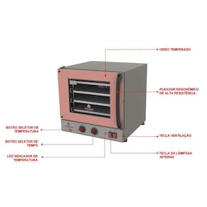 - Este equipamento é utilizado para assar pizzas, lasanhas, pães de queijo, bolos, salgados e carnes, proporcionando um cozimento uniforme.