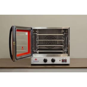 Forno Turbo Elétrico Progás Fast Oven 56 Litros Vermelho 127V PRP-004Renovando o mercado dos fornos industriais, a Progás traz a vocês a linha Fast Oven. Sem fumaça ou sujeira esse forno trará muito mais praticidade ao seu negócio. Perfeito para cozinhas pequenas ou ambientes com pouca ventilação, instale seu forno onde preferir sem se preocupar com sistema de exaustão ou ventilação.O PRP é elétrico e sua resistência conta com 2000W de potência que além de ser ainda mais potente, também traz muito mais economia consumindo apenas 1,5kW/h. Essa linha ainda conta com iluminação interna, turbina que distribui o calor uniformemente e timer, trazendo ainda mais praticidade aos seus preparos.Seu isolamento térmico é feito por lã basáltica trazendo muito mais segurança. Esse forno tem capacidade total de 56 litros e capacidade útil de 39 litros, sendo ideal para qualquer ocasião. Esse modelo ainda conta com visores de vidro temperado que facilitarão a visualização dos seus alimentos. Seu interior conta com 4 esteiras, trazendo maior número de possibilidades.Especificações Técnicas:- Marca: Progás - Linha: Fast Oven- Modelo: PRP-004- Voltagem: 127V - Tipo: Forno Elétrico- Cor: Vermelho- Capacidade Útil: 36 Litros- Capacidade Total: 56 Litros- Potência da Resistência: 2000W- Consumo: 1,5 kWh- Número de Esteiras: 4- Material: Aço Inox Escovado- Material Visores: Vidro Temperado- Iluminação Interna: Sim- Timer: Sim- Isolamento Térmico: Lã Basáltica- Dimensões do Internas do Produto (AxLxP): 33 x 46 x 37 cm- Dimensões do Produto (AxLxP): 51 x 51,8 x 66,5 cm- Dimensões da Embalagem (AxLxP): 56 x 53,5 x 67,5 cm- Peso Líquido: 22kg- Peso Bruto: 26,8kg- Garantia: 6 meses