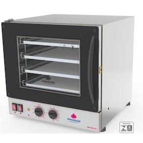 Este equipamento é utilizado para assar pizzas, lasanhas, pães de queijo, bolos, salgados e carnes, proporcionando um cozimento uniforme. - Com iluminação interna, turbina que distribui o calor uniformemente e timer; - Isolamento térmico com lã basáltica; - Painel com teclas individuais para acionamento do motor (turbina) e lâmpada; - Cozimento uniforme.