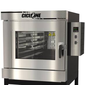Garanta assados perfeitos e produção acelerada com o Forno Turbo Elétrico Venâncio Ciclone 5 Esteiras - eficiência, durabilidade e economia em um só equipamento!