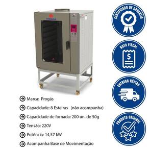 FORNO TURBO INDUSTRIAL COM BASE PROGÁS ELÉTRICO CAPACIDADE PARA 8 ESTEIRAS PRP-8000 E STYLE 220V COM VAPOR - P37113 Marca: Progás Modelo: PRP-8000 E Style 220V