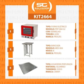 Forno Turbo Prp-004 g2220v Vermelho + Bancada Mes-004 Progás + 8 Assadeiras Cimapi