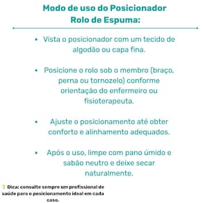 Seu formato cilíndrico permite apoiar e alinhar corretamente os membros superiores e inferiores, proporcionando mais conforto, segurança e estabilidade durante procedimentos cirúrgicos, internações ou períodos de recuperação