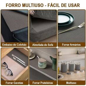 Forro flex antiderrapante Assenta unifortmente sobre prateleiras e fundo de gavetas Corte industrial com acabamento perfeito Vantagens - antiderrapante e antimofo; - flexível e resistente; - anti impacto; - fácil de usar; - fácil de recortar com tesoura ou estilete; - corte industrial ótimo acabamento; - excelente qualidade; - assenta uniformemente nas prateleiras e gavetas; - discreto e moderno; - combina com qualquer ambiente. Contém: 1 peça s Dimensões de cada peça - largura: 30cm - comprimento: 4,00 metro s Cor: cinza Material: antiderrapante 100% pvc Sugestão de uso: prateleiras e gavetas em cozinhas, quartos, closets e etc. Somos fabricantes, por isso garantimos o melhor preço e qualidade para esse produto. Um produto idealiza comercio de utilidades. Marca: Não Informado Ean: 7908975915752