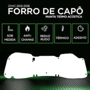 FORRO CAPÔ MANTA TERMO ACÚSTICA ANTIRRUÍDO CIVIC 2012 A 2016 FELTRO ISOLANTE 5MM PRETO ANTICHAMAS GRUD GTC 5334