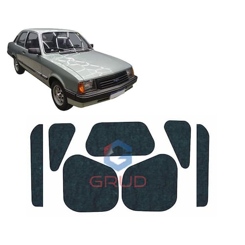 Manta de 5MM de espessura com tratamento betumado, parcialmente auto-extinguínvel, adesivada. Corte a laser, específico para cada veiculo.