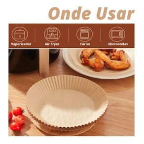 Forro de papel anti gordura para airfryer kit com 50 formas a solução ideal para preparar o seu alimento saudável dentro da air fryer sem ter que fazer o trabalho chato de limpeza dela depois. O papel de air fryer evita o contato direto do alimento com a bandeja do air fryer. Dessa forma, acaba protegendo o seu equipamento dos resíduos dos alimentos, gorduras e temperos. Além disso, traz economia de tempo na limpeza e não afeta em nada no sabor do alimento. Após o uso, basta apenas descartá-lo no lixo. Seja para assar ou fritar o seu alimento, não se preocupe mais em ter que ficar limpando o seu air fryer depois de cada uso. O formato do nosso papel se assimila a uma forma redonda e se encaixa muito bem nos air fryers do mercado, atendendo os equipamentos de 3 a 5 litros. O papel é muito fácil de usar uma vez que já vem no formato de uma forma sendo necessário apenas colocar o alimento dentro e inserir dentro da air fryer. O papel possui 3 camadas e é antiaderente, resistente a óleo e a água. Por questão de segurança, recomendamos nunca ultrapassar a temperatura acima de 220 graus do seu air fryer. Além do uso em air fryers, também pode ser utilizado também dentro de fornos, microondas, panelas vaporizadoras também. Depois de utilizado, basta somente descartá-lo no lixo. O uso do papel não irá afetar a eficiência do seu air fryer. A circulação do ar quente continuará passando calor para o papel, que posteriormente irá passar para os alimentos. Atenção: nunca pré-aqueça o seu air fryer com o papel dentro. Isso pode queimar o papel e iniciar fumaça. É muito importante que o alimento colocado dentro do papel tenha um peso suficiente para manter o papel firme dentro do air fryer. Caso contrário, o papel pode voar dentro do equipamento e queimar. Ficha técnica: quantidade: 50 unidades uso: air fryers de 3 a 5 litros medidas: 25 diâmetro externo x 20 diâmetro interno x 4,5 altura temperatura máxima suportada: 220c cor: bege Marca: Pen Tech