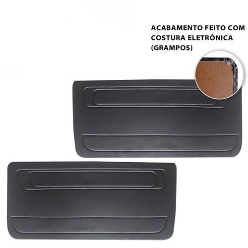 Revestimento de porta lateral -marca: rona revestimento automotivo -forro de porta -2 unidades - direito e esquerdo par -acabamento feito com costura elétrica - grampos -cor: preto -largo -vinil -código rona: 7062