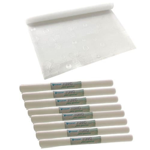 Proteja seus móveis de manchas e riscos!O forro é perfeito para ser usado em prateleiras, gavetas, armários, closet, banheiro, impedindo que o atrito de latas, pacotes, potes arranhe superfícies de seu armário da cozinha e até mesmo que produtos de limpeza ou higiene marquem seus móveis.Excelente para manter a organização e limpeza de seus espaços, sem estragar ou desgastar seu móvel. Aqui vai uma dica: É comum em muitas residências que as panelas sejam guardadas em gabinetes de pia. Contudo, por conta da encanação é provável que no local haja umidade e um desgaste natural do móvel. Usar este forro trará muitos benefícios, protegerá sua pia bem como as panelas do contato direto com a madeira, assim como facilitará a limpeza do espaço.Fabricado em material antiderrapante e fácil de lavar.Material: Plástico PVCDimensões Aproximadas do Rolo: 45 cm de profundidade x 120 cm de largura x 0,1 mm de espessura.Acompanha: 8 rolos.8 Rolos totalizarão 9,6 metros.LOJA UNIVERSAL VENDAS